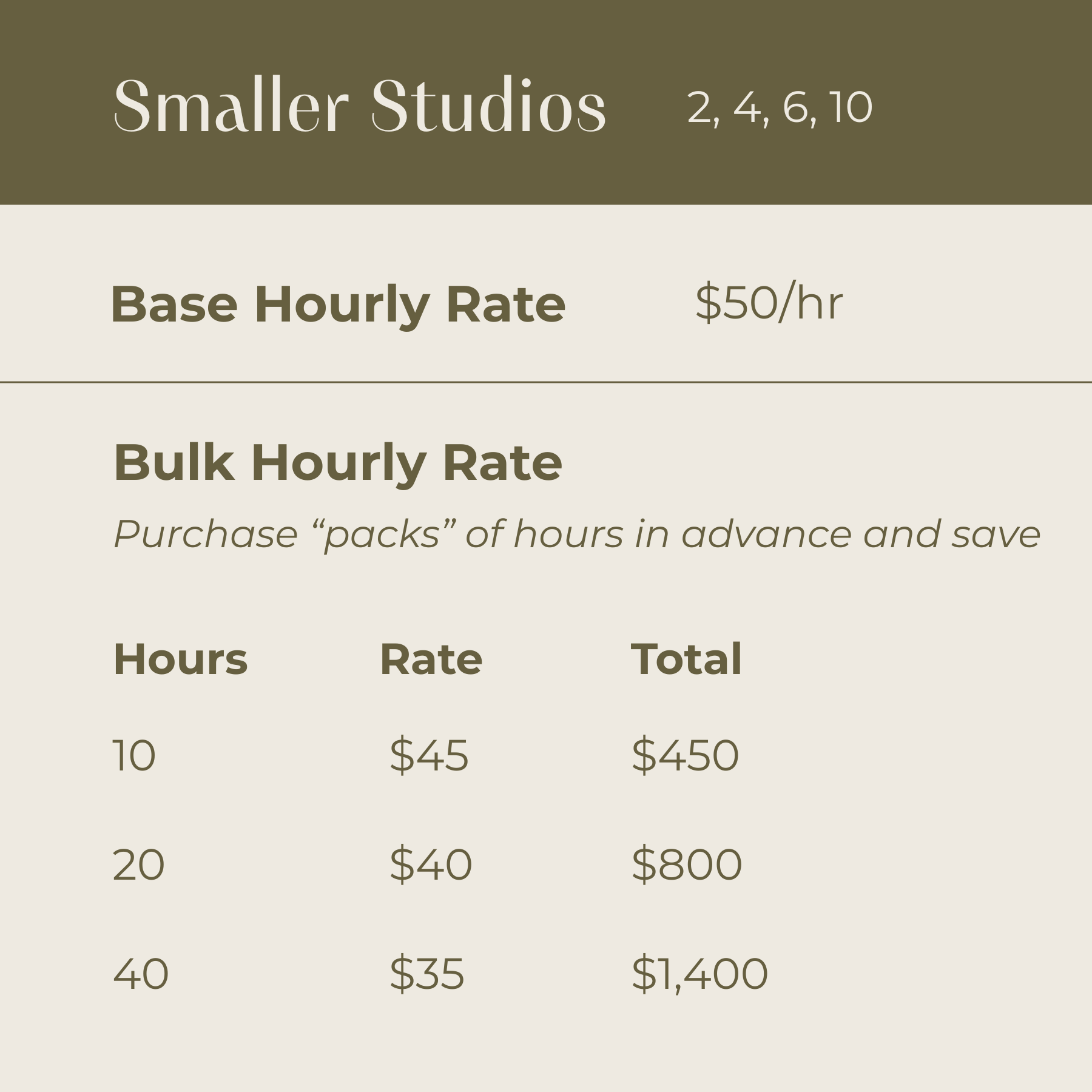 Pricing by Studio